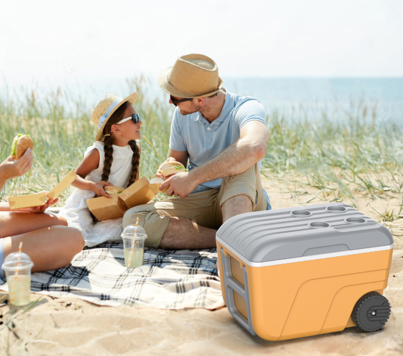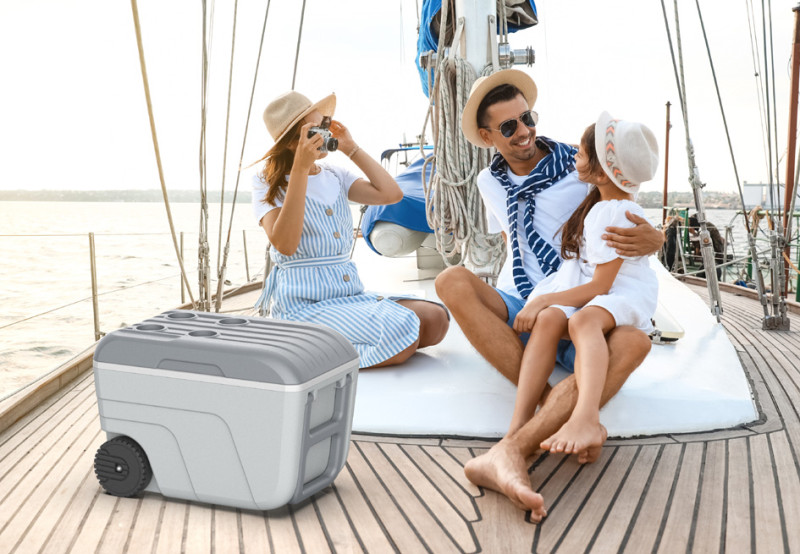 en plastique (PP), roues robustes, poignée ergonomique,, récipient: gris clair, poignée et couvercle: gris, isolation, polystyrène, poignées latérales, logements pour gobelets,, bouchon de vidange, fermeture hermétique, (019309 G.C/G.GP CX1)