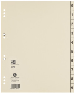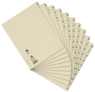 en carton kraft, 200 g/m2, avec renforcement du bord perforé, impression recto-verso: chiffres 0-9 et champs 10/20,, perforation: 60 & 80 mm, perforation 80 mm avec oeillet, contenu: 100 feuilles, (400004664)