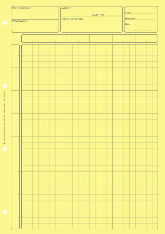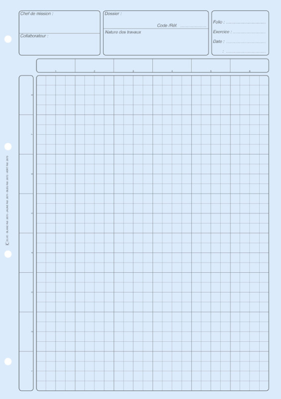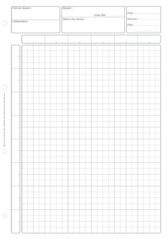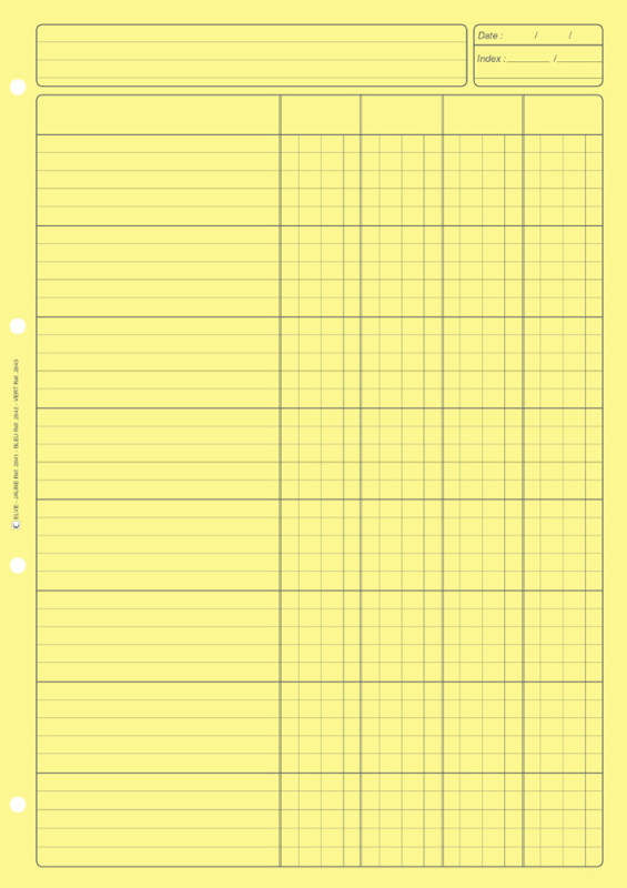 297 x 210 mm, colonne + carreaux avec entête dossier, papier, offset 80 g/m2, perforation 4 trous de classement, dessous, en carton blanc 350 g/m2, (2642),