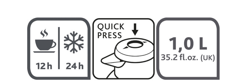 flacon isolant en verre de haute qualité, 100% étanche,, surface plastique solide, fermeture QUICK PRESS,, conserve 12 heures au chaud ou 24 heures au froid, dimensions: (L)150 x (P)180 x (H)220 mm, (N4010900 / 3100600287)
