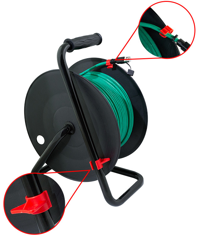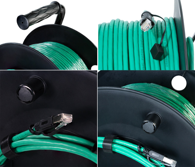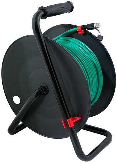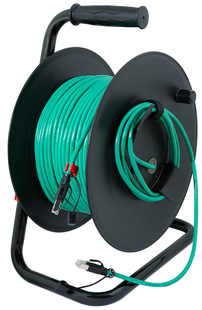 inkl. 80 m Patchkabel, 26/7 AWG PVC Kabel, 2x Kat.6A, Steckverbinder für Direktanschluss, für Datenraten bis zu, 10 Gigabit Ethernet, für Innenbereich, mit Drehgriff, Fest-, stellbremse & Kabelclip, Farbe Trommel/Kabel: schwarz/grün, (CQ3080S)