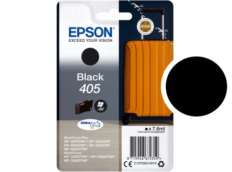 Epson 405 Cartouche d'encre Noir 350 pages, origine Epson DURABrite Ultra 405 - Noir - Un seul packet - Jet d'encre pour imprimantes Epson WorkForce Pro WF-4830DTWF WorkForce Pro WF-4820DWF WorkForce Pro WF-3820DWF WF-3825DWF WF-4825DWF WF-7830DTWF WF-7835DTWF WF-7840DTWF WF-4820 WF-4830 WF-3820