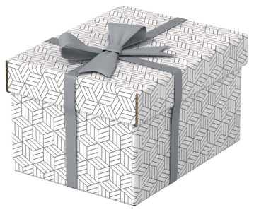 en carton ondulé 100% recyclé, avec couvercle amovible,, double paroi et fond, surface essuyable, bicolore, design, géométrique, dimensions: (L)200 x(P)255 x (H)150 mm, contenu: 3 boîtes, (628280)