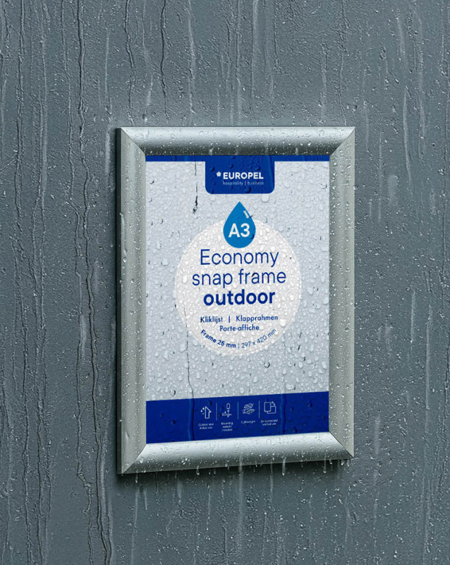 en aluminium anodisé, profilé de cadre arrondi 25 mm, avec, angles à onglet et film transparent anti-reflet, protection, IPX4 contre les projections d'eau, résistant aux UV,, système Easy-Click pour un changement rapide des documents, (355132)