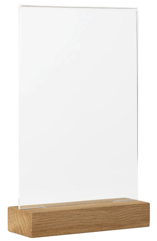 socle en bois de chêne, plaque en acrylique transparent,, pour une présentation des deux côtés, changement rapide des, documents, dimensions: (L)148 x (H)210 mm, (356310),