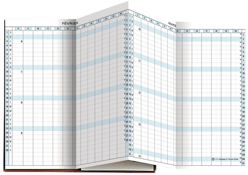 80 x 175 mm, 1 mois sur 2 pages, couverture synthétique, toucher doux, pliage accordéon 15 volets, papier blanc,, assorti en: noir, rouge, bleu canard, tranche naturelle,, en paquet de 5 pièces, (17262E)