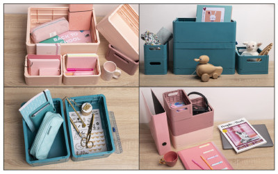 en plastique recyclé, entièrement pliable, stockable à plat, pour gagner de la place, avec poignées creuses,, dimensions: (L)138 x (P)188 x (H)95 mm, format A6, (27038D),