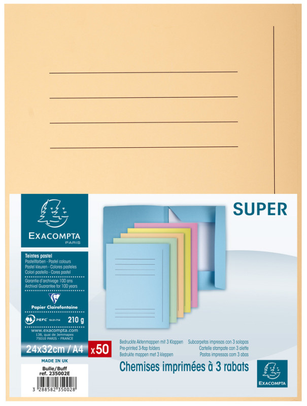 en carte lustrée 250 g/m2, avec 3 rabats pastel et champ, d'inscription, dimensions: (L)240 x (H)320 mm, assorti en, bleu clair, bulle, canari, rose, vert clair, contenu: 50 chemises, (235000E)