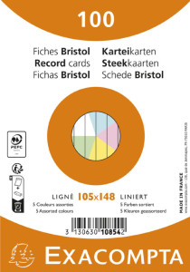 dimensions: (L)105 x (H)148 mm, 205 g/m2,, blanchi au ph-neutre, contenu: 100 fiches bristol sous film, (10254E),