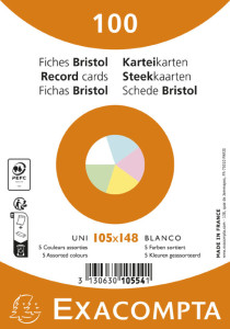 dimensions: (L)105 x (H)148 mm, 205 g/m2, papier issu de, forêts gérées de façon durable, blanchi au ph-neutre, contenu: 100 fiches bristol sous film, (10509E),