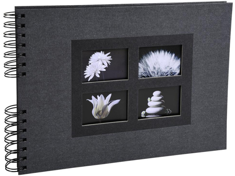 beschichteter Kartoneinband mit Passepartout-Ausstanzung,, 50 Seiten, schwarzer Fotokarton 250 g/qm, schwarze Spiral-, bindung, Kapazität: 100 Fotos 10x15 cm, (16245E),
