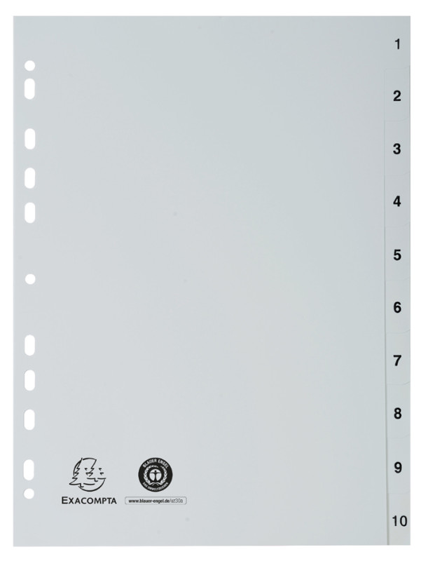 en PP recyclé, 0,12 mm, couleur : gris, onglets imprimés,, perforation Euro, Blauer Engel (Ange Bleu),, dimensions : (L)225 x (H)297 mm, (1715E),