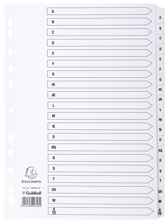 blanc, en carton 160 g/m2, page de garde imprimée, touches, A - Z, perforation universelle, (MWDA-ZZ), ,