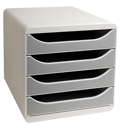 clair, corps en polystyrène, pour format A4+, tiroirs, ouverts avec butée de sécurité, hauteur des tiroirs: 55 mm,, dimensions: (L)278 x (P)347 x (H)267 mm, corps: gris clair, tiroirs: noir, (310014D)