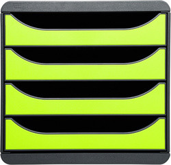 Exacompta Big-Box Module de classement 4 tiroirs couleur gris et vert citron, corps en polypropylène, pour format A4+, tiroir ouvert avec butée de sécurité, hauteur des tiroirs 55 mm, dimensions (L)278 x (P)347 x (H)267 mm, corps gris souris, tiroirs vert citron (310725D)