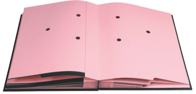 carton recouvert PVC, dos à soufflet extensible toilé,, porte-étiquette sur la face avant, compartiments en carte, rose 300 g/m2 avec 3 perforations de visualisation, encoches, renforcées à l'intérieur des pages, dim.: (L)240 x (H)320 mm, (24211E)