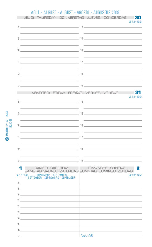 ------------------ pour le marché: F -----------------------, journalier, rendez-vous à la 1/2 heure, 1er semestre,, dimensions: (L)172 x (H)105 mm, (18245E),