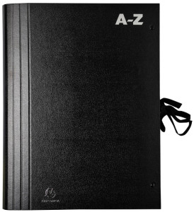 trieur avec 26 compartiments, compartiments imprimés de A-Z,, avec un dos extensible et un ruban pour la fermeture,, extérieur en carton pelliculé PVC/PU, intérieur en carte, recyclés gris 250 g/m2, dimensions: (L)340 x (H)385 mm, (61550B)