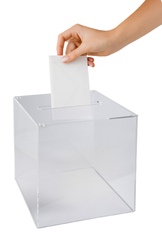 avec fente, couvercle à charnière amovible, fermeture simple, idéal pour les concours, tombolas, élections ou boîte à, idées, dimensions: (L)210 x (T)210 x (H)210 mm, (89058D),