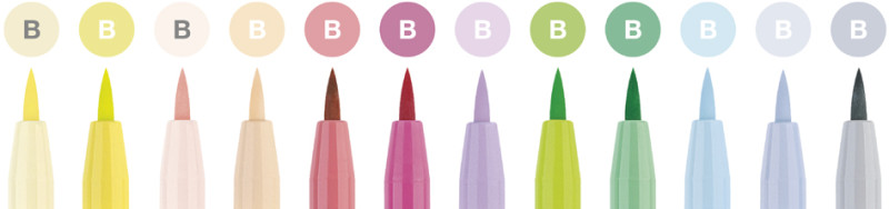 avec une encre de chine pigmentée, très résistant à la, lumière, indélébile, permanent, inodore, sans acide,, pointe à pinceau (Brush), assorti dans des couleurs pastel, contient: 12 feutres, (267420)