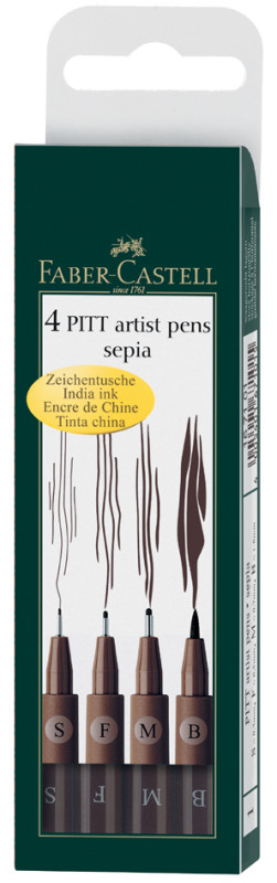 encre de chine pigmentée, grande résistance à la lumière,, résistant à l'eau, permanent, inodore, sans acide, capuchon, à clip, assorti dans les largeurs de tracé: S, F, M, B, contient: 4 feutres, (167101)