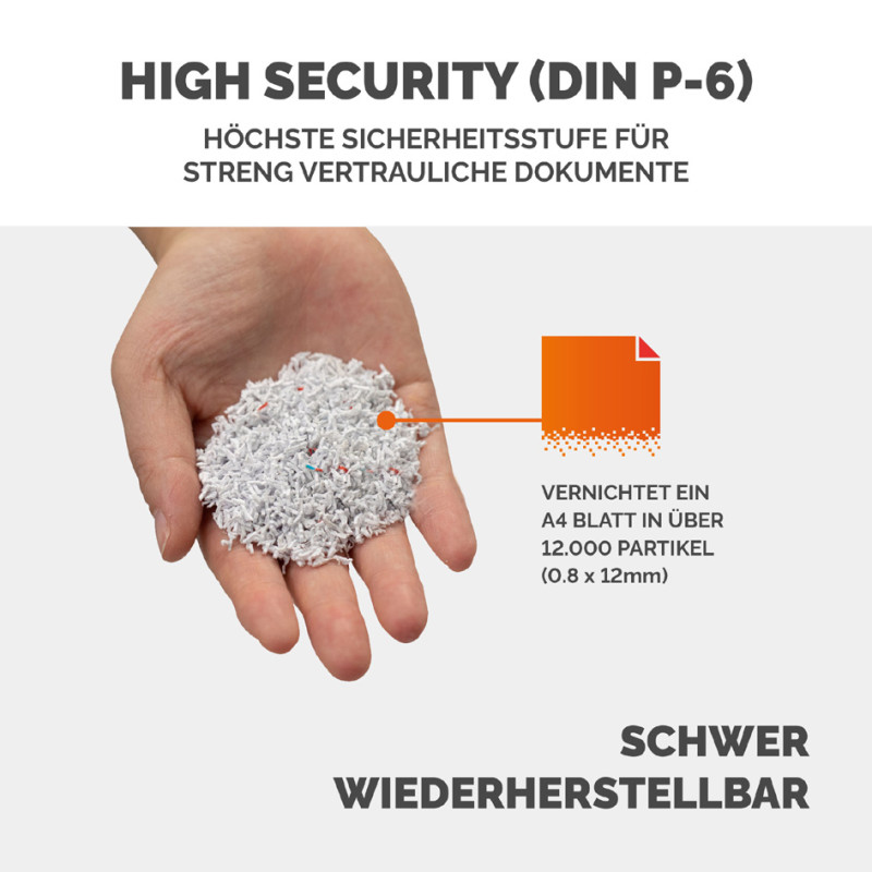 ------------------ pour le marché: CH ----------------------, 0,8 x 12 mm, capacité de découpe: 8-10 feuilles, volume de, corbeille:100 litres, largeur d'entrée: 260 mm, niveau de, sécurité: P6, détruit cartes de crédit/CD/trombones, noir/, argent, dimensions: (L)495 x (P)470 x (H)926 mm (4610301)