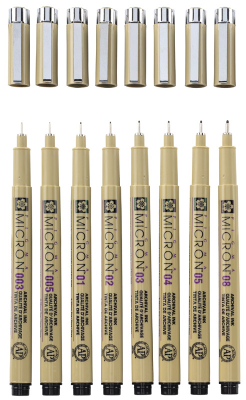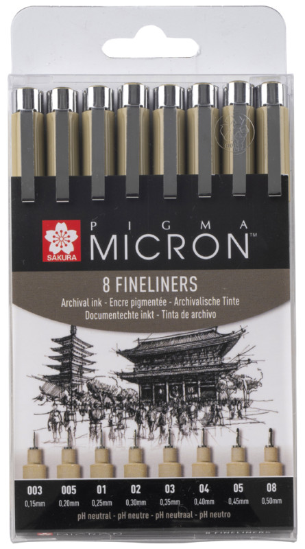 sortiert in den Strichstärken: 0,15 mm, 0,2 mm, 0,25 mm,, 0,3 mm, 0,35 mm, 0,4 mm, 0,45 mm, 0,5 mm, Tinte: permanent, farb-, wasser- und lichtecht, feine Spitze, beinhaltet: 8 Stück, (POXSDK8)