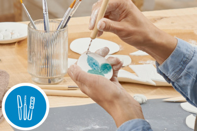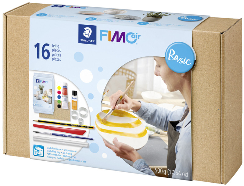 contenu : 500 g de pâte à modeler en blanc, 1x pinceau, 6, peintures acrylique (blanc de titane, noir, jaune citron,, rouge vermillon, bleu de cobalt, vert clair), 10 ml de, vernis brillant, 2 outils de modelage,, (81 SET 01)