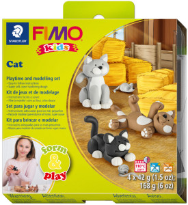 souple, afin de modeler des chats, très souple, correspont à EN71,, Contenu: 4 x 42 g Pâte à modeler en blanc marron clair, gris, clair et noir, outil de modélisation, manuel d'instruction, et de jeu (8034 16 LY)
