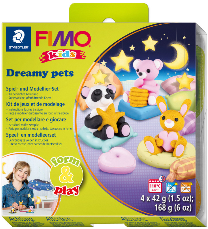 durcissant au four, pour modeler des ours & des lapins, très, souple, conforme à la norme EN71, contenu: 4x 42 g de pâte à, modeler en blanc, rose, or pailleté & noir, outil de modela-, ge, instructions, feuille de bricolage, support de jeu &, (8034 28 LY)