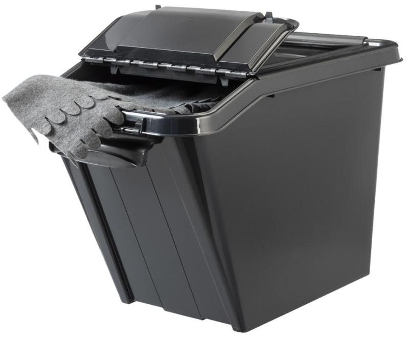 *** Produkt hat leichte Kratzer ***, Box und Deckel, Farbe: schwarz, Klippverschlüsse, weißes, Schild mit QR-Code zur Abspeicherung des Inhalts,, Maße: (B)395 x (T)650 x (H)438 mm, Material: recyceltes PP,, mit Klappe am Deckel