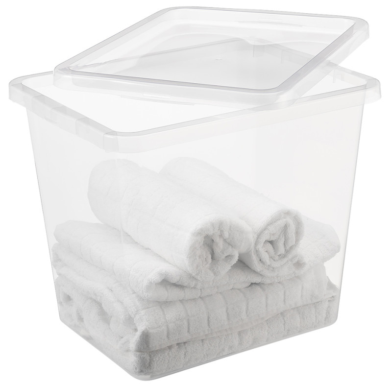 *** Box mit leichten Beschädigungen, aber nutzbar ***, Box und Deckel, Farbe: transparent, Material: PPR,, stapelbar, ausgestatte mit einem Klick-Deckel, breiter Rand, des Deckels sorgt für Stabilität und Rutschfestigkeit, Maße: (B)595 x (T)395 x (H)310 mm