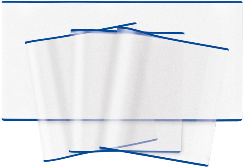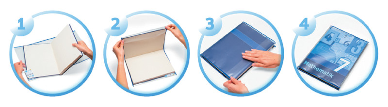 *** Produkt hat Druckstellen - Nur optischer Schaden ***, aus PP-Folie, blauer Rand, stabiler verschweißter Kanten-, schutz, recycelbar, kein Verkleben der Bücher, zweite Lasche, für perfekten Halt, mit Beschriftungsetikett, ohne Weich-, macher, passt perfekt, ganz ohne Zuschneiden