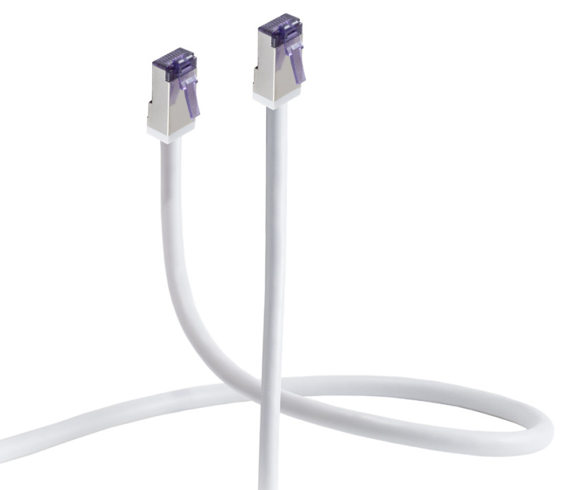 RJ45-RJ45, 500 MHz, gaine externe flexible, blindage double,, matériau conducteurs: cuivre, nombre de fils: 8 (4x2 twisted, pair), fiche moulée, broches plaquées or 3 microns, câble, rond, diamètre câble: 6,2 mm, couleur câble: gris, (FL31-28480)