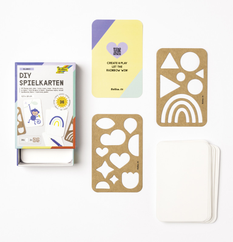 contenu: 36 cartes à jouer, blanc, à personnaliser,, 2 pochoirs en carton kraft avec motifs à colorier, (2327), ,
