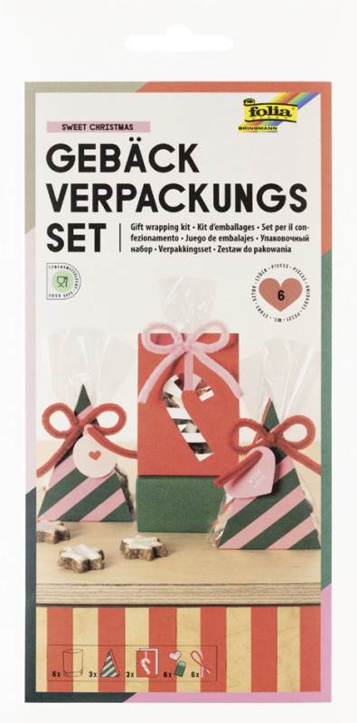 Inhalt: 6x transparenter Bodenbeutel, 6x Aufsteller,, 6x Chenilledraht à 400 mm in den Farben: rosa und rot, und 6x Weihnachts-Anhänger, (48206),