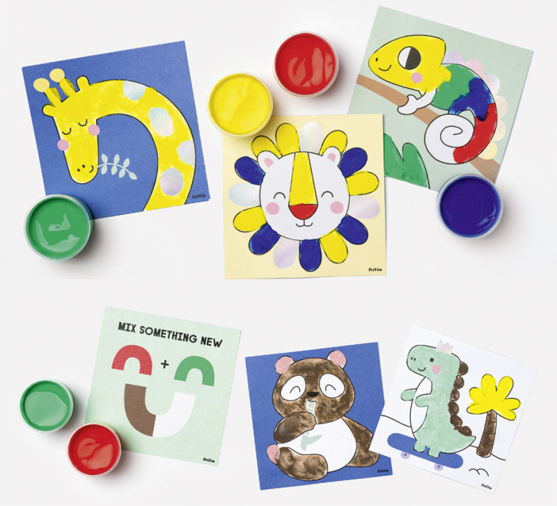 contenu: 5 peintures de 30 ml, assorti dans les couleurs:, jaune, rouge pâle, blanc, marron clair, vert feuille,, 12 modèles à colorier au format 125 x 125 mm, gaufrés à, chaud, 1 modèle de mélange et instructions, (48210)