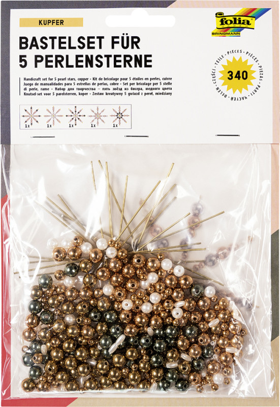 perles en plastique de tailles différentes en argent, blanc, perle et bleu clair, ainsi que 5 étoiles en métal, dans un, sachet plastique, (12530),