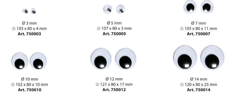 diamètre: 14 mm, couleur: blanc, pupille mobile, contenu: 100 pièces, (750014), ,