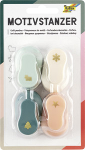 set composé de 4 perforateurs assortis dans différents, motifs de Noël, taille du motif: 8 mm, boîtier en plastique,, poinçon en métal, avec réservoir, (7229),