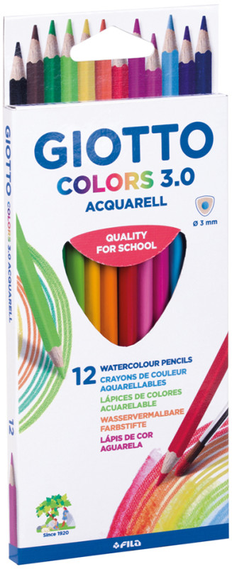 hexagonal, corps verni dans la couleur de la mine, épaisseur, de la mine: 3,0 mm, couleurs lumineuses, aquarellable, contenu: 12 crayons, (F277100),