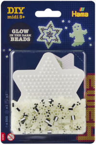 diamètre de la perle midi: 5,0 mm,, incl. 1 plaque en forme de petite étoile, papier à repasser,, perles à repasser luminescentes/fluorescentes, contenu: 350 perles à repasser, (4191)