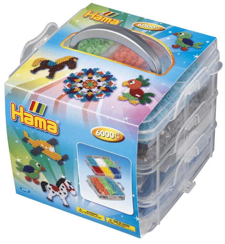 équipée, diamètre de la perle midi: 5 mm, incl. 3 plaques: 1 x perroquet, poney et hexagone moyen,, modèles, papier à repasser, instructions, contenu: 6.000 perles à repasser, (6701)