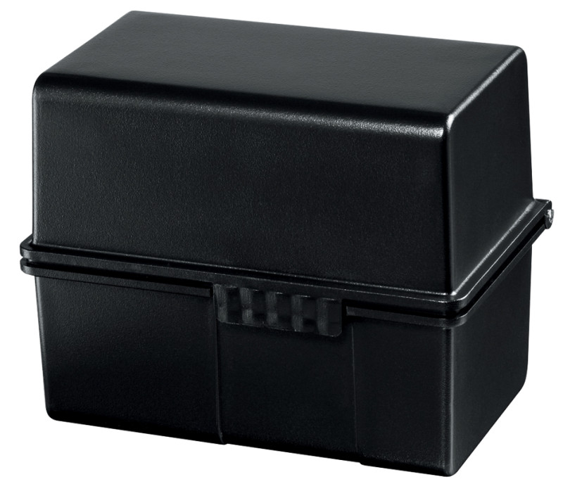 pour 450 fiches, non équipé, avec fermeture à clip et, charnières en acier, le couvercle bascule complètement en, arrière et sert ainsi de support de rangement,, dimensions: (L)228 x (P)102 x (H)228 mm, (975-63)