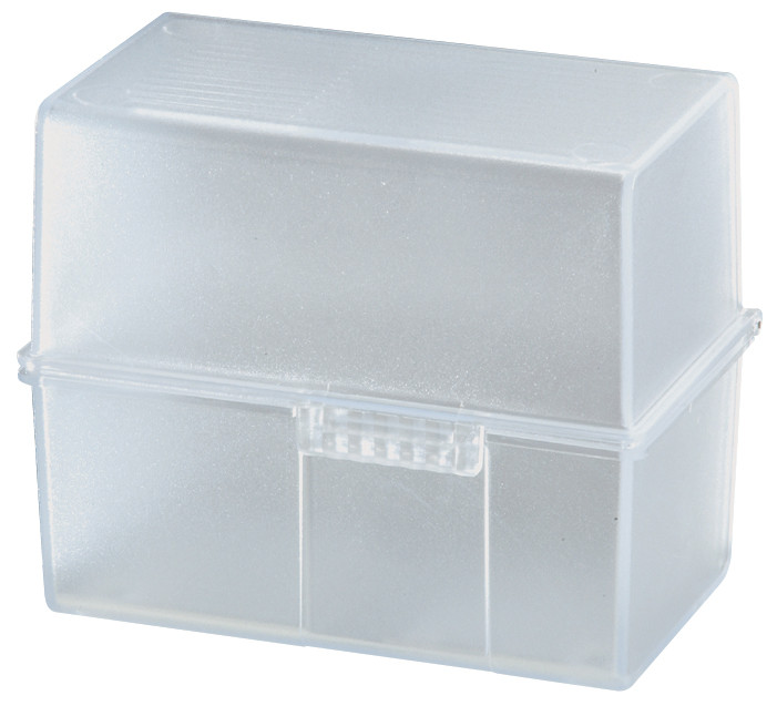 pour 300 fiches, non équipé, avec fermeture à clip et, charnières en acier, le couvercle bascule complètement en, arrière et sert ainsi de support de rangement,, dimensions: (L)121 x (P)74 x (H)101 mm, (977-63)