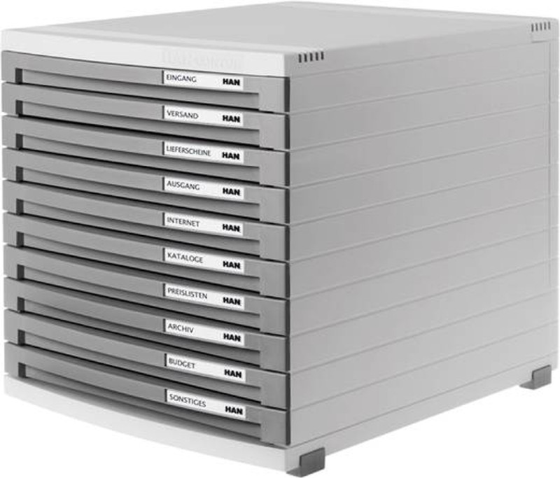 clair, tiroirs: gris sombre, en polystyrène, pour les, formats A4/C4, conception stable, butée d'arrêt, étiquettes, d'indexation, à combiner individuellement, dimensions: (L)300 x (P)382 x (H)307 mm, (1510-19)