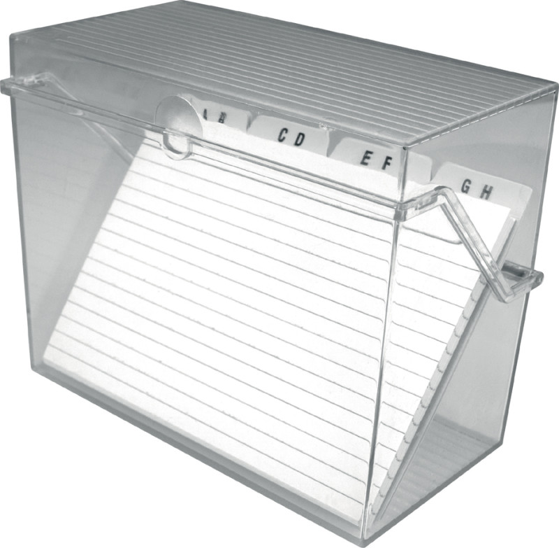 équipé, en polystyrène, pour environ 400 fiches bristol,, livré avec 50 fiches blanches, lignées et un registre de, A-Z, emballé dans un film plastique, dimensions: (L)165 x (P)90 x (H)130 mm, (H6114602)
