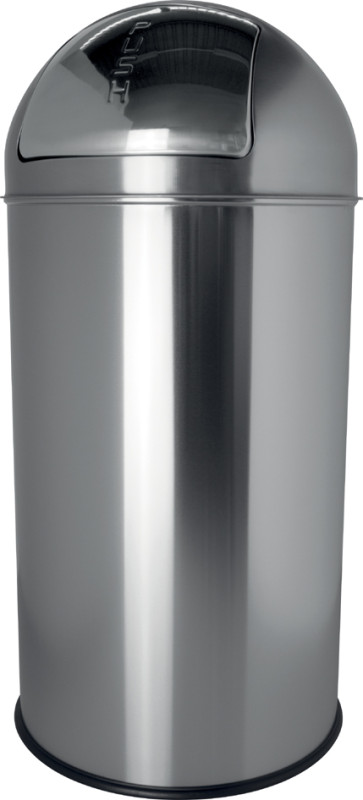 argent, rond, poubelle en acier inoxydé, intérieur en métal, du récipient zingué et anneau sol caoutchouté, clapet Push, acier inoxydable, diamètre: 360 mm, hauteur: 745 mm,couverle, amovible, (H2401400)
