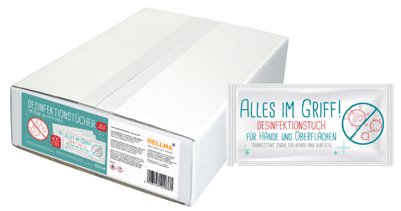 pour désinfecter les mains, les objets et les petites surfa-, ces, emballage individuel, efficace contre les virus envelop, pés, p.ex. coronavirus, virus de la grippe et bactéries, contenu : 400 lingettes, (60122038)