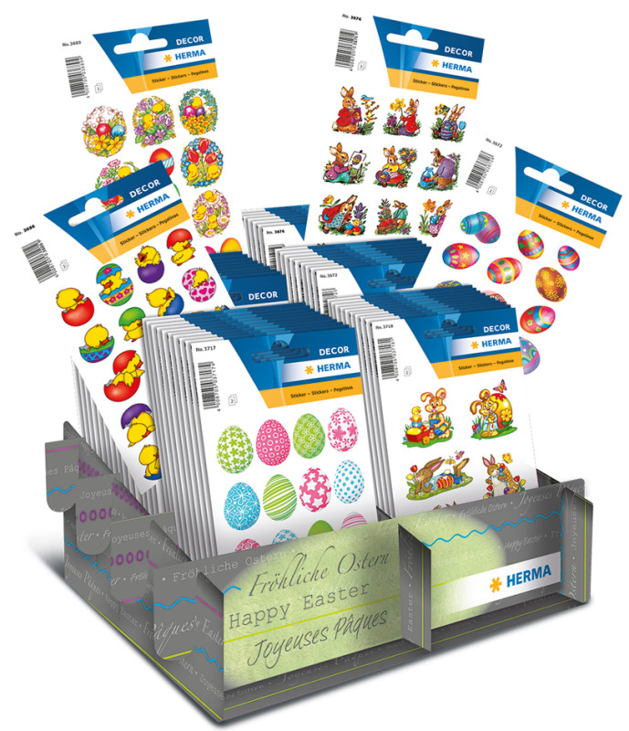 en présentoir en carton, muni 6 art conception de Pâques, autocollant de papier ou de film, partiellement beglimmert, comprend: 60 des paquets, (3047),
